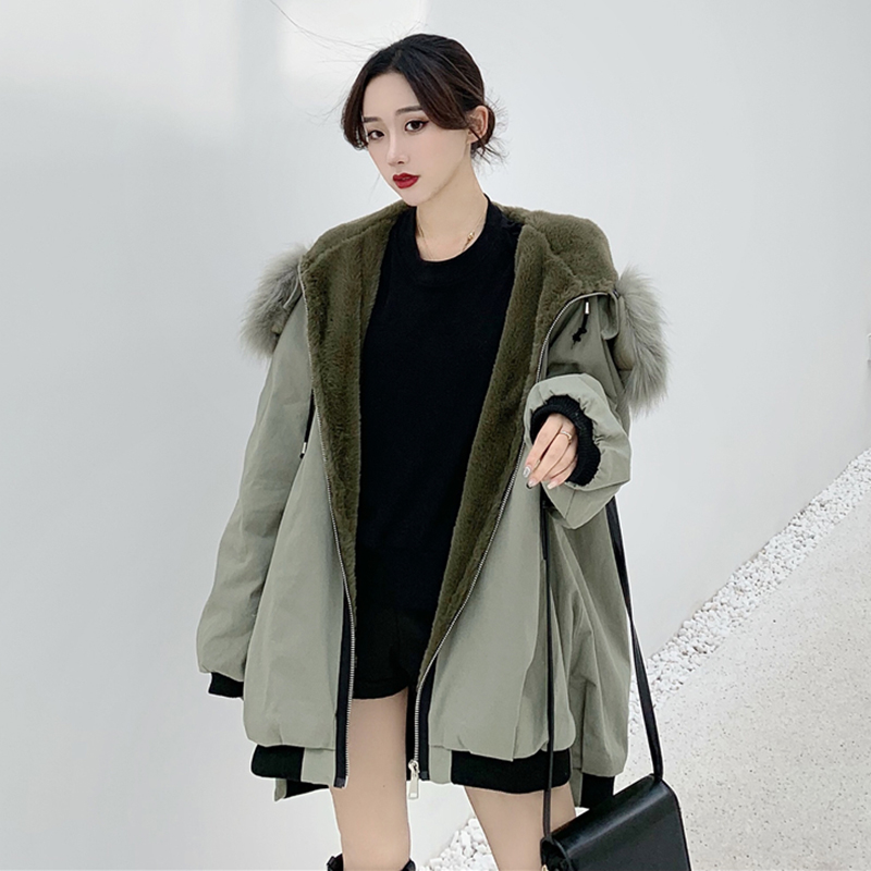 冬季女裝2018新款學生時尚大毛領連帽棉衣韓版寬松中長款棉服外套
