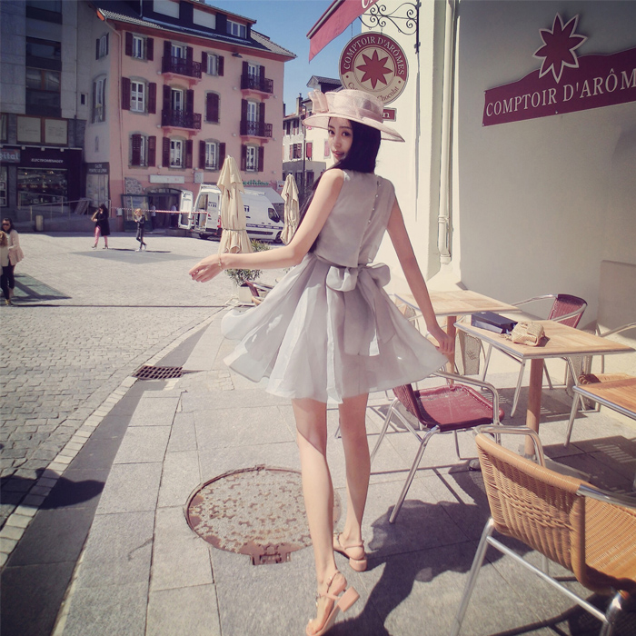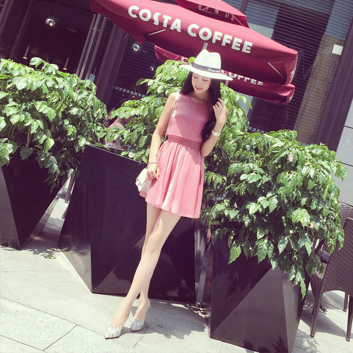 / 150cm加小碼XS無袖雪紡連衣裙女夏季矮個子顯高時尚百搭修身短裙