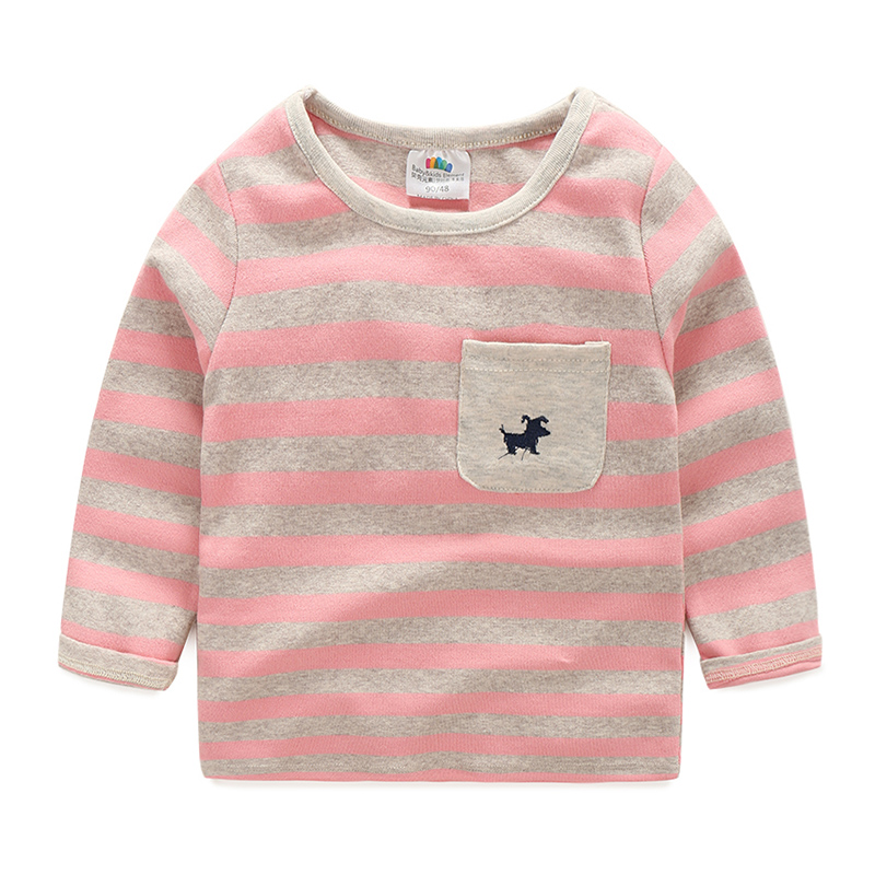 / 寶寶條紋T恤 秋裝新款童裝女童裝兒童口袋圓領打底衫tx-6010