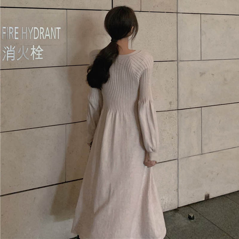 秋冬裝2018新款高腰顯瘦氣質針織連衣裙法式少女egg風V領小黑裙子