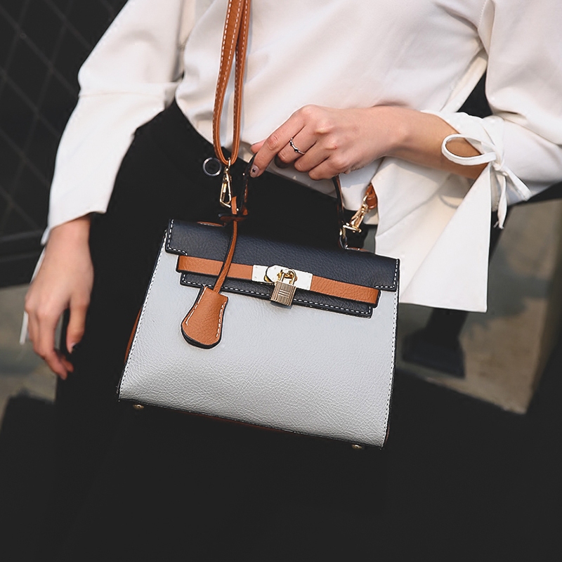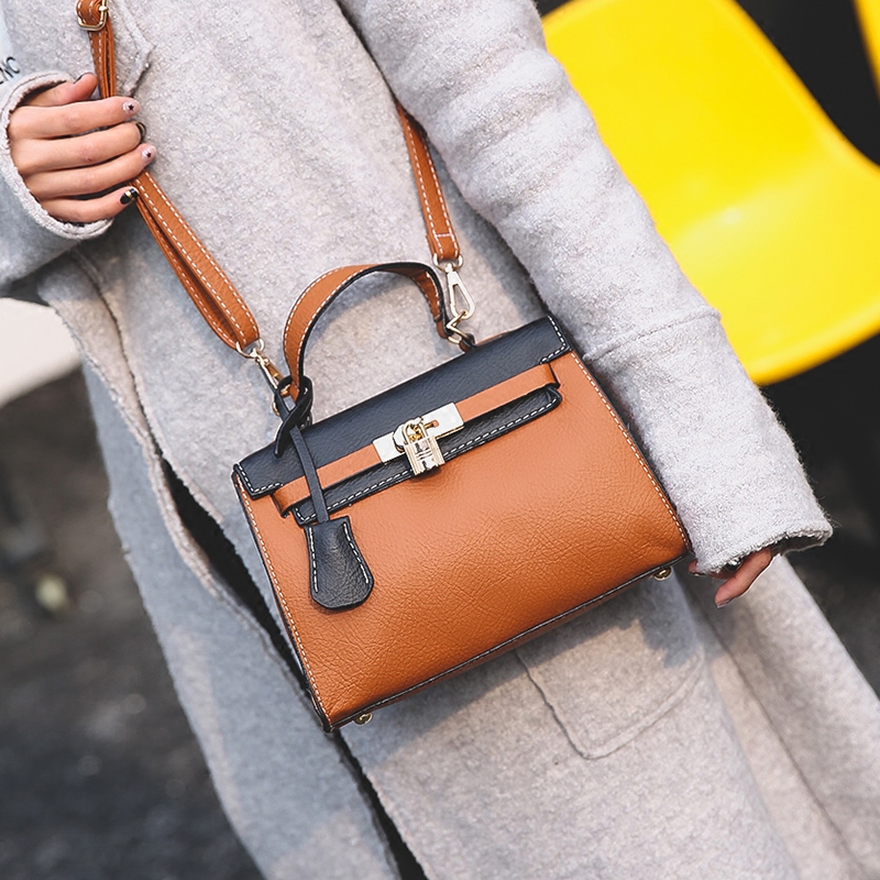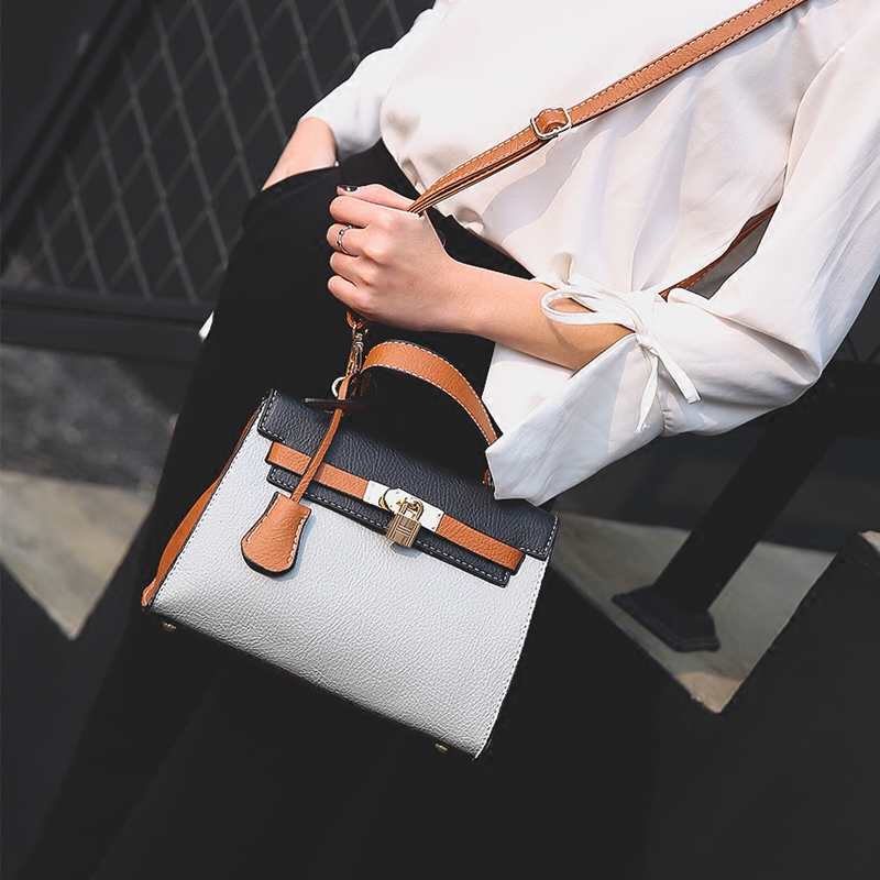/ 新款韓版迷你凱莉包撞色鎖扣小包包時尚手提單肩女包斜挎包潮