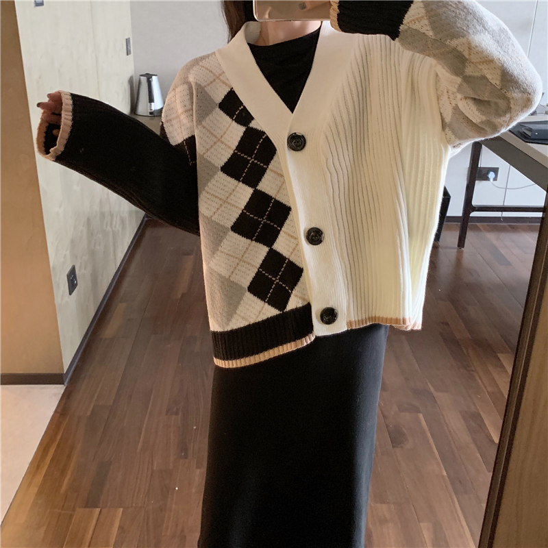 秋冬季新款chic百搭長袖格子慵懶風網紅毛衣針織外套女寬松開衫潮