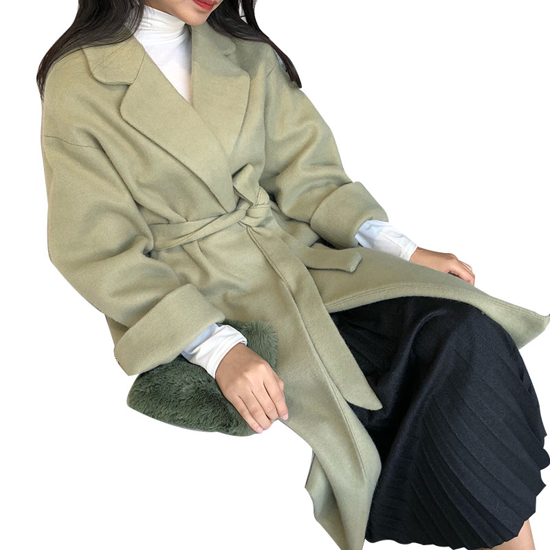 / 毛呢外套女秋冬大衣女新款2018韓版氣質中長款呢子大衣潮~帶腰帶