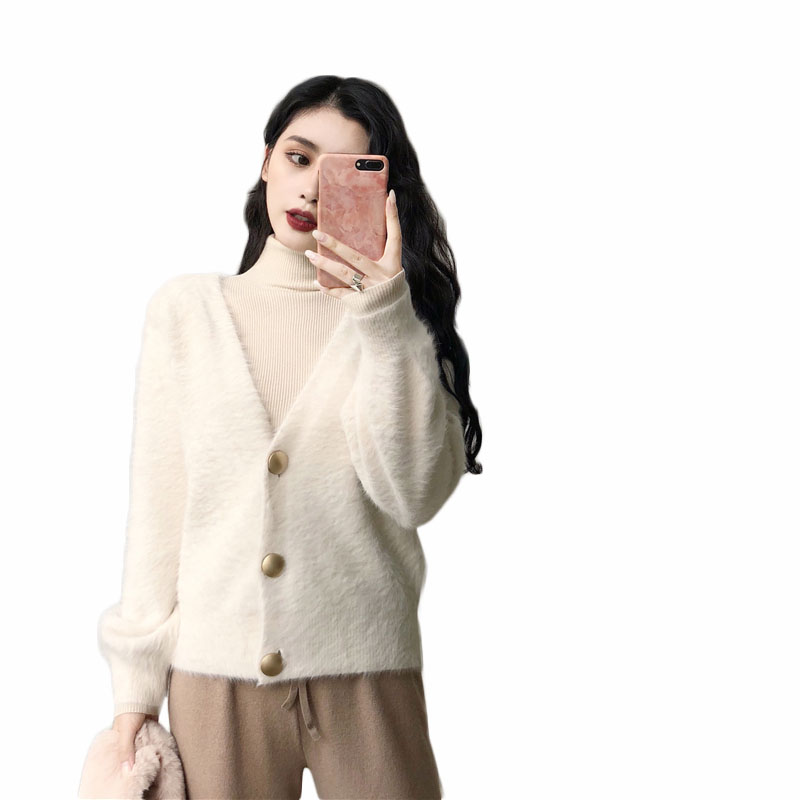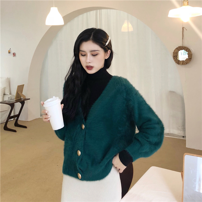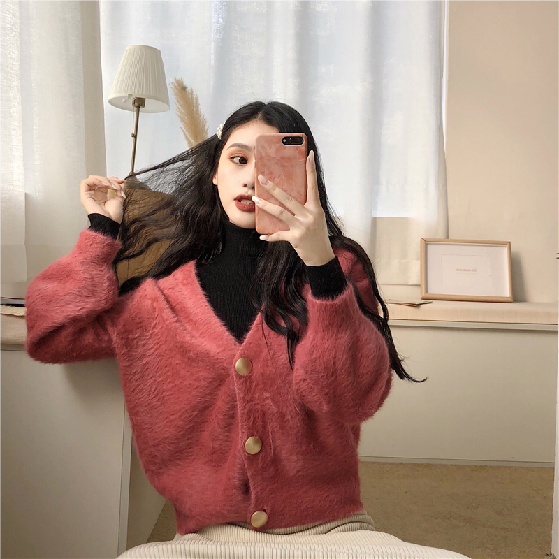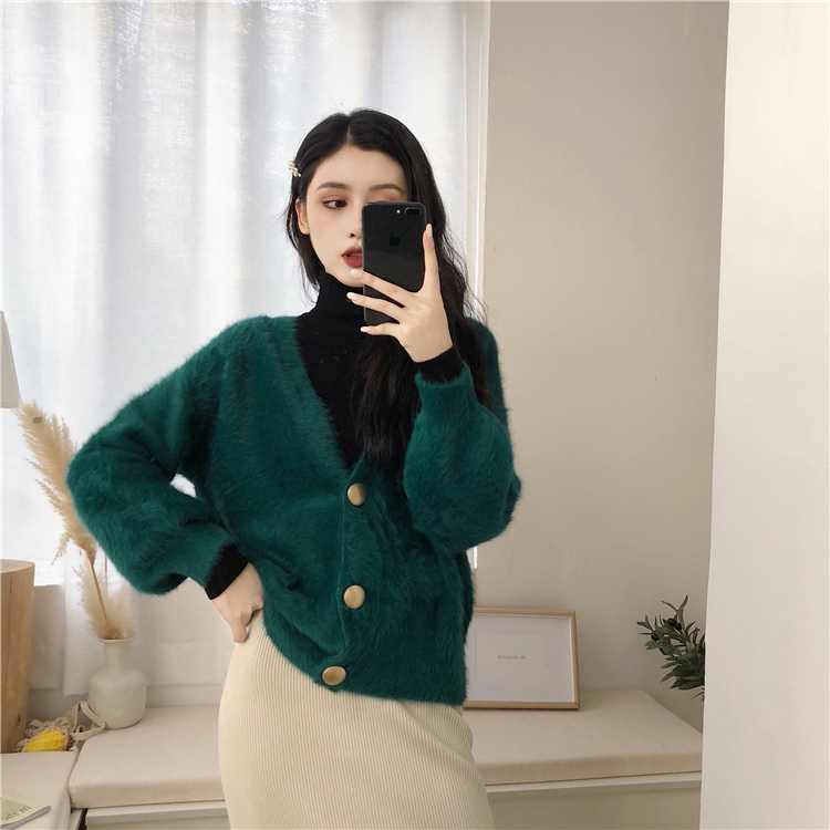 網紅同款時尚韓版貂毛毛衣外套女秋冬2018新款寬松加厚針織開衫潮