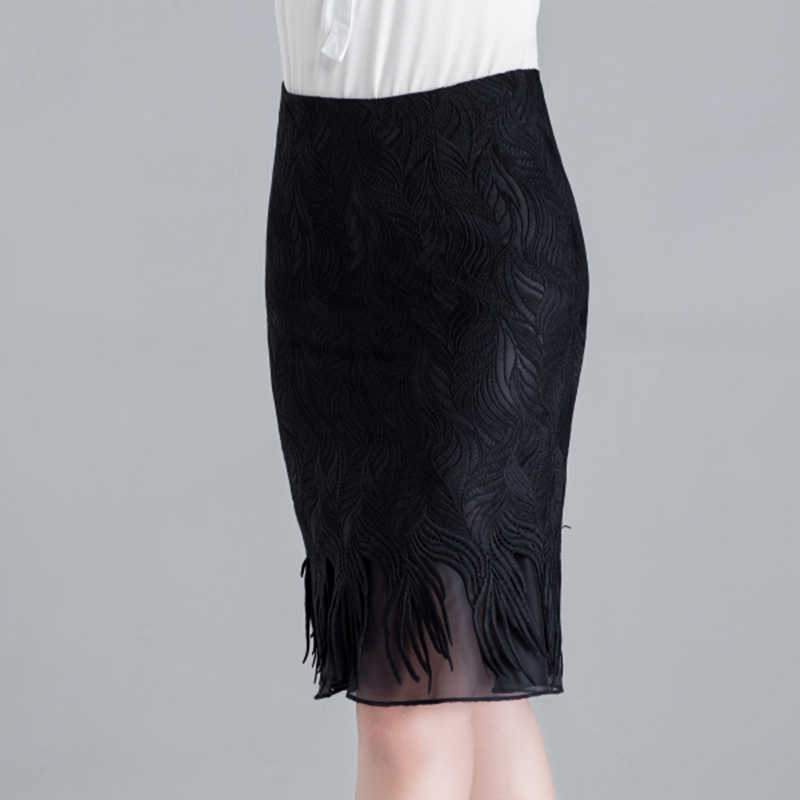/ 蕾絲半身裙包臀裙短裙夏季修身大碼黑色中裙高腰包裙繡花一步裙