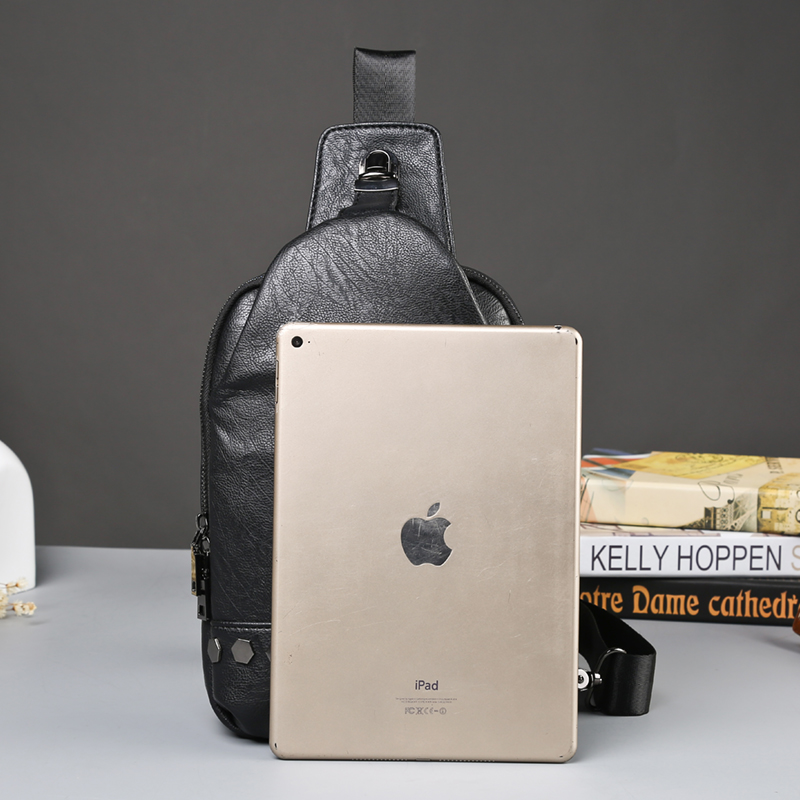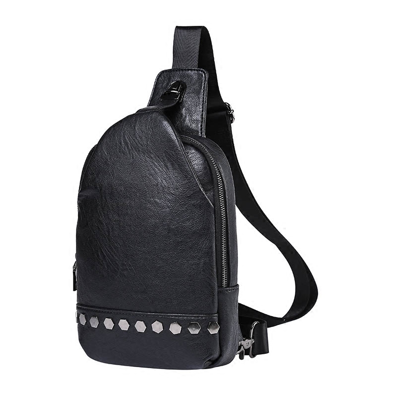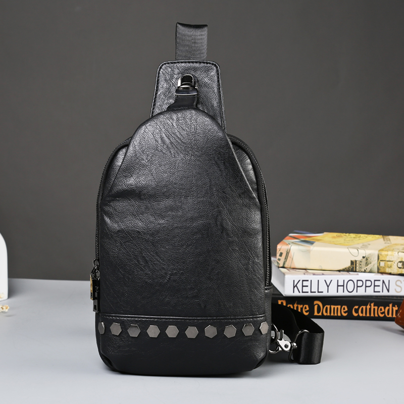 / 日系韓版潮流男士斜挎包潮流鉚釘男女胸包休閑出行單肩包