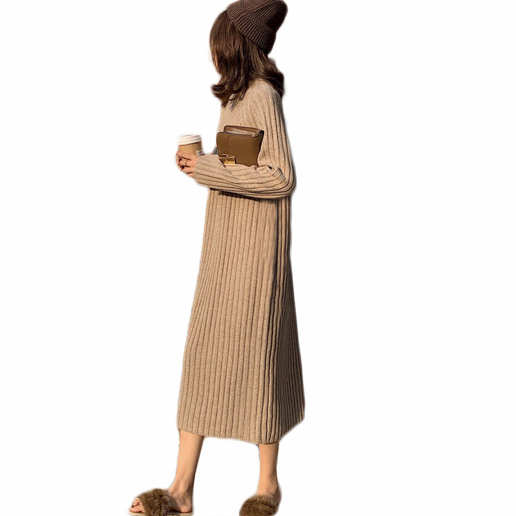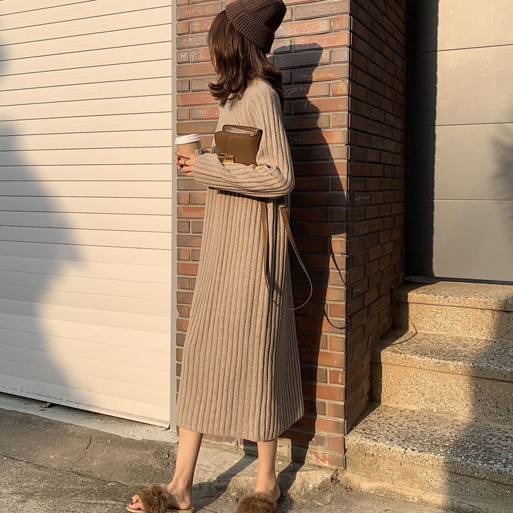 初冬溫柔風毛衣裙女冬裝2018新款女中長款寬松連衣裙女(配圍巾)