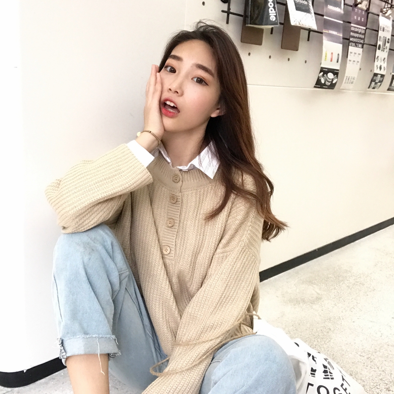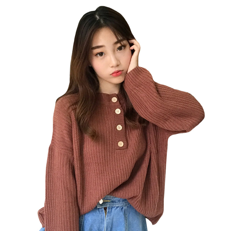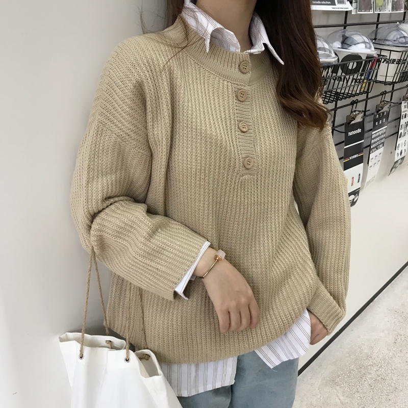 / 秋季女裝韓版純色復古慵懶風寬松百搭網紅套頭針織衫毛衣上衣外套