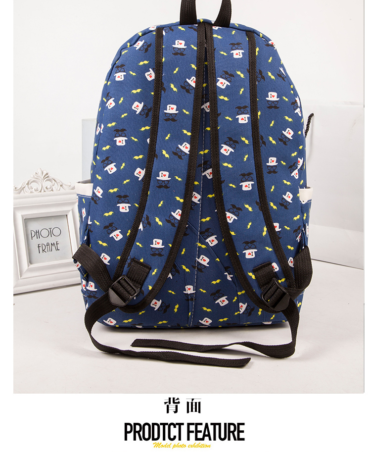 小清新帆布雙肩書包 韓版小胡子學生背包旅行包休閑潮學院風女包