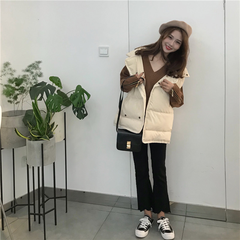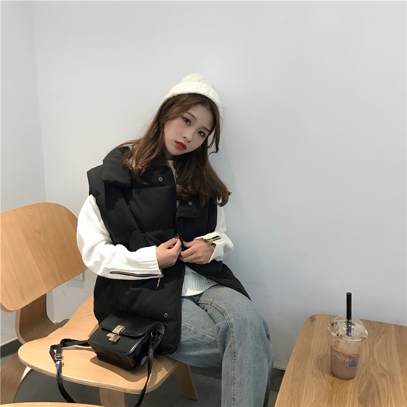 復古溫柔棉馬甲外套冬季女2018新款百搭寬松立領oversize棉衣外套