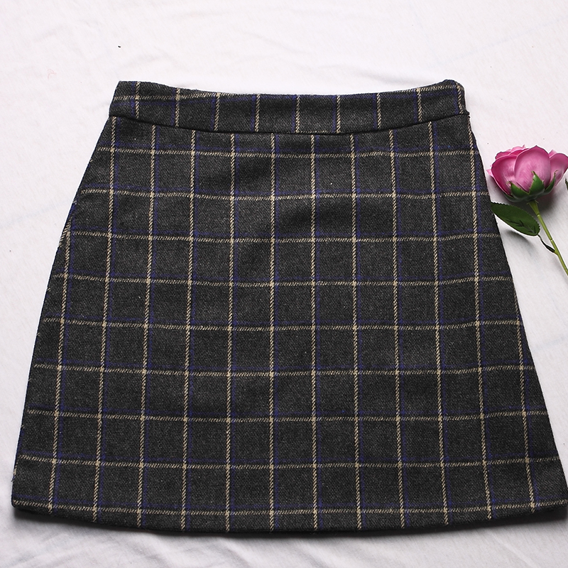 秋冬女裝韓版高腰毛呢格子短裙學生復古a字裙女百搭包臀半身裙潮
