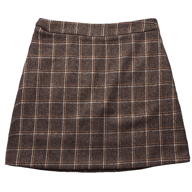 / 秋冬女裝韓版高腰毛呢格子短裙學生復古a字裙女百搭包臀半身裙潮