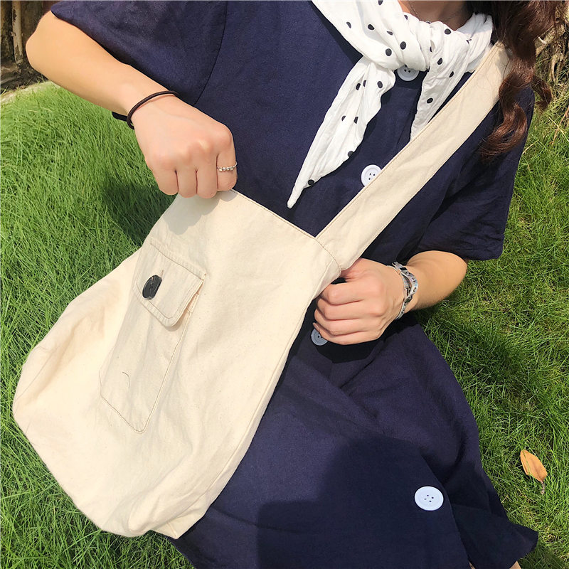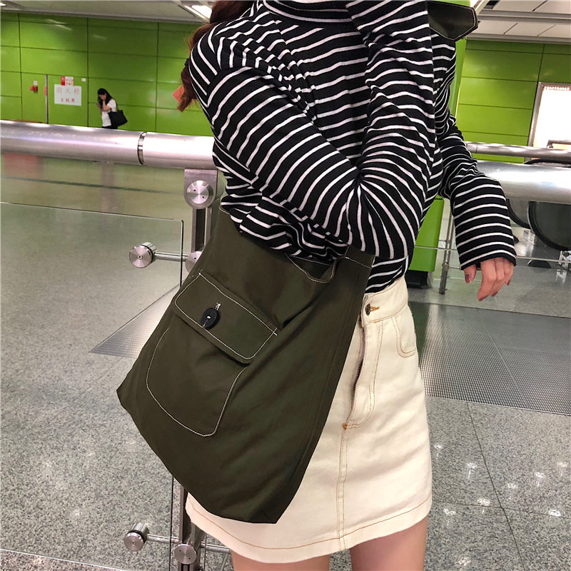 / 2018新款韓版時尚單肩帆布袋購物袋簡約百搭斜挎包帆布包女士包包