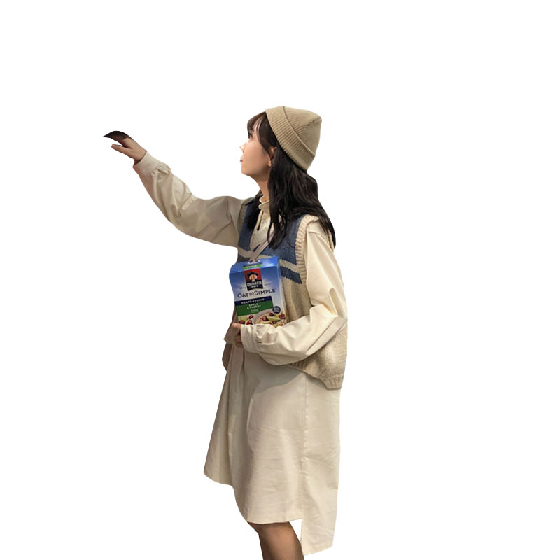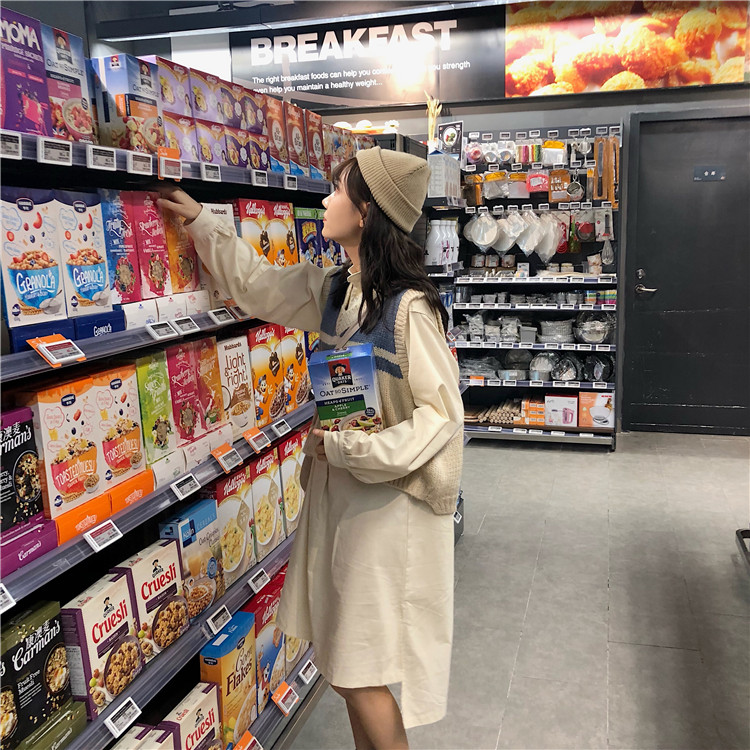 / 韓版時尚休閑套裝秋季女裝中長款襯衫連衣裙+針織馬甲背心兩件套