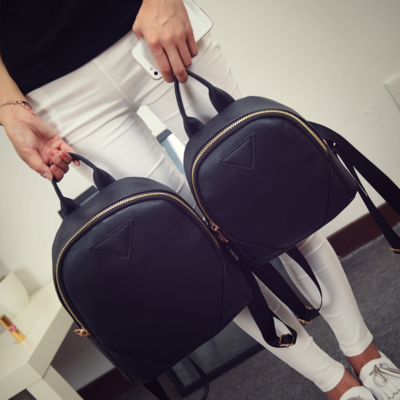 新款韓版純色pu雙肩包女學院風學生書包休閑旅行包迷你小背包