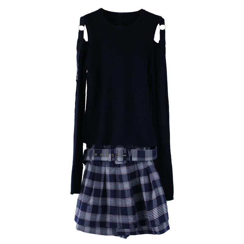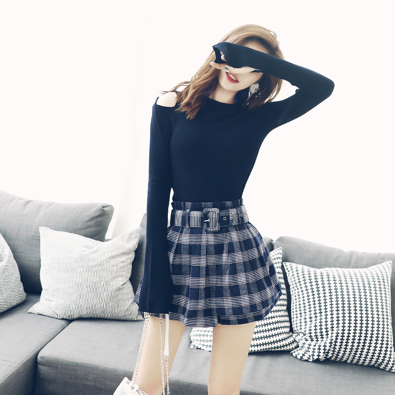 / 2018秋季新款名媛氣質港味露肩上衣短褲裙蹦迪套裝氣質兩件套女