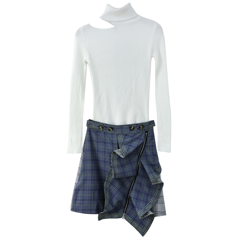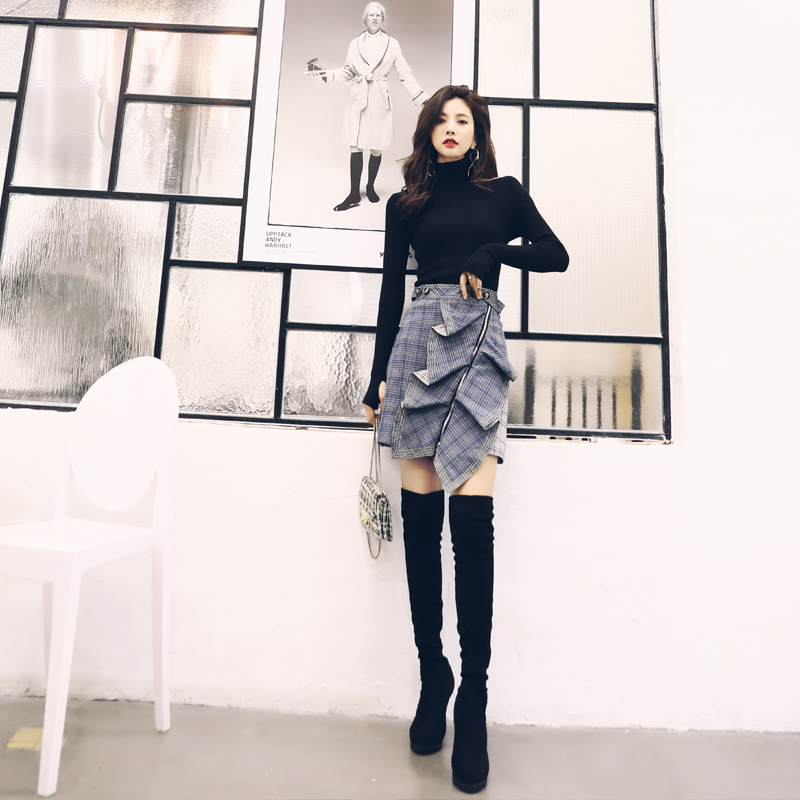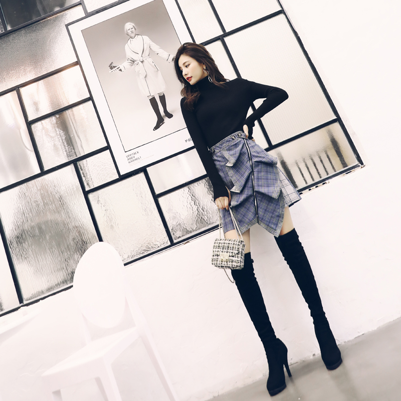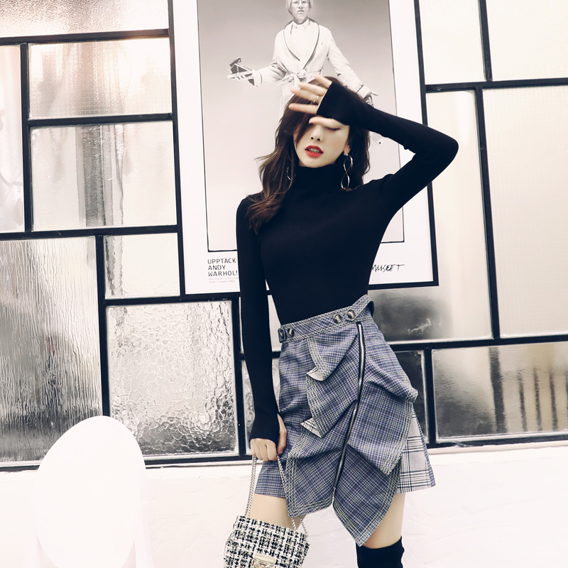 / 名媛氣質2018新款秋時尚長袖網紅針織衫上衣格子半身短裙兩件套裝