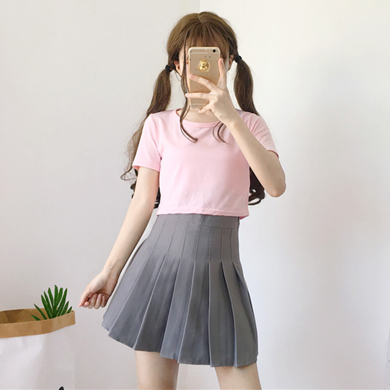 / 百褶裙女夏季新款女裝韓版學院風百搭高腰顯瘦純色學生A字半身裙