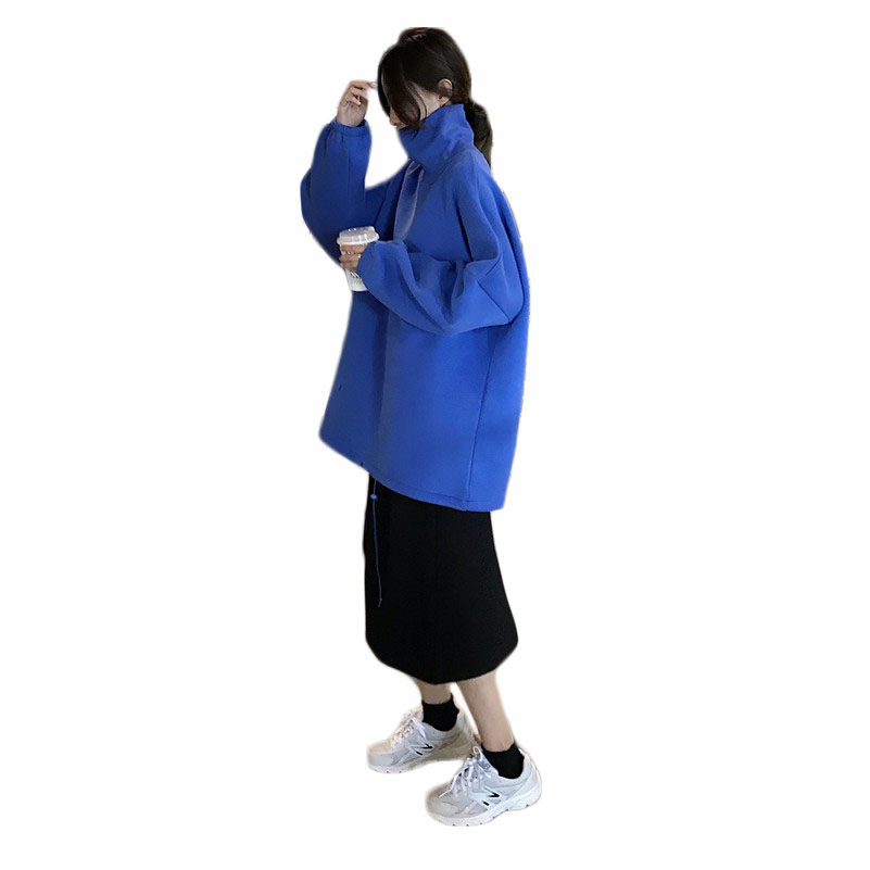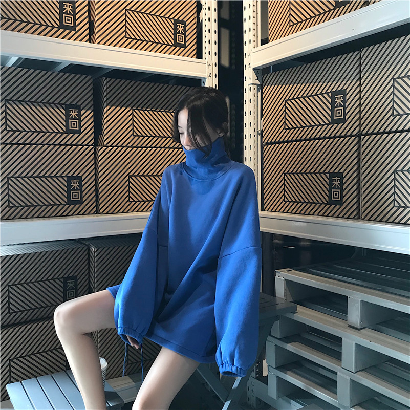 秋冬復古韓版慵懶風寬松高領加絨加厚保暖長袖套頭衛衣女2018新款