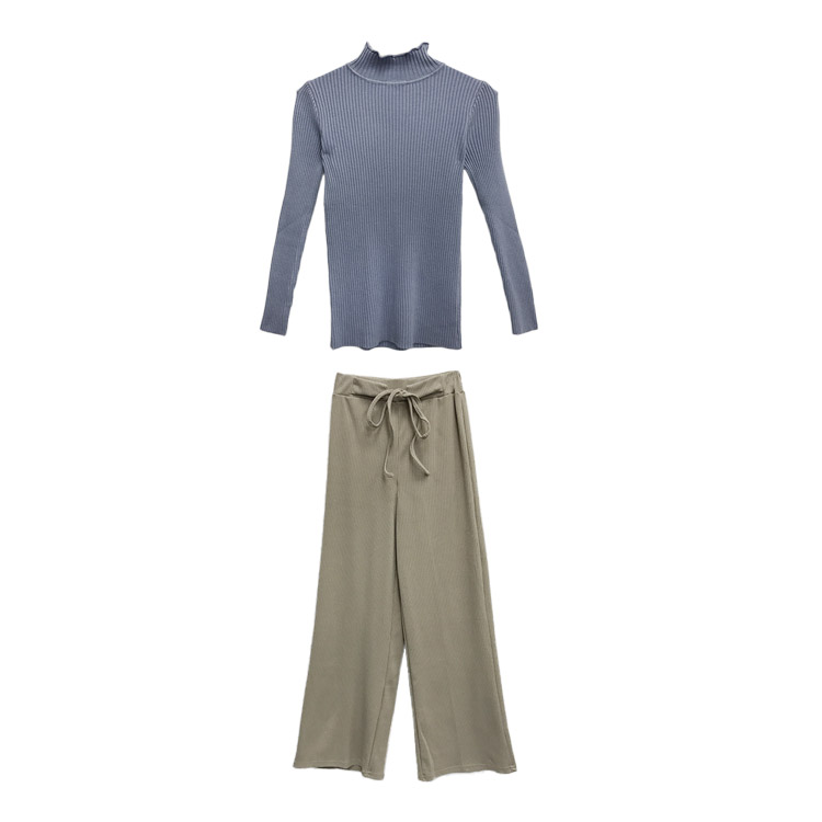 港味女秋裝2018新款復古風修身顯瘦高腰系帶針織直筒百搭闊腿褲潮