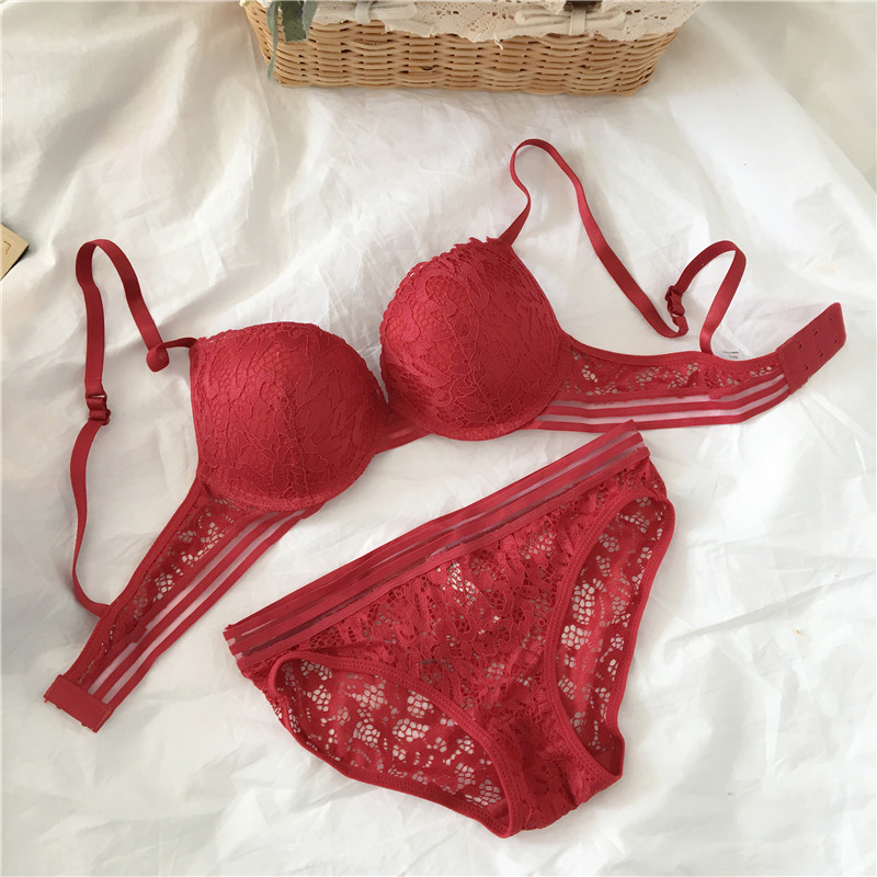 / 新款韓版性感蕾絲時尚舒適少女聚攏一片式內衣文胸三角內褲套裝潮