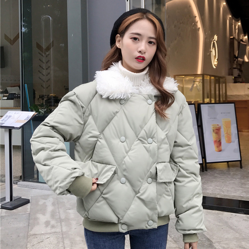 / 冬季2018新款韓版保暖棉服羊羔毛領短外套學生雙排扣休閑面包服女