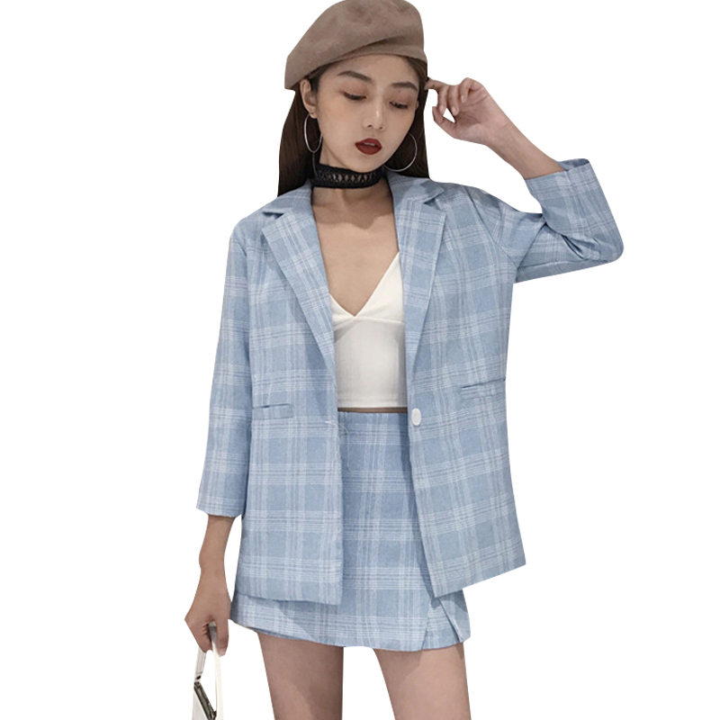 春季女裝新款韓國寬松顯瘦格子小西裝外套+格子短裙褲套裝分開拍
