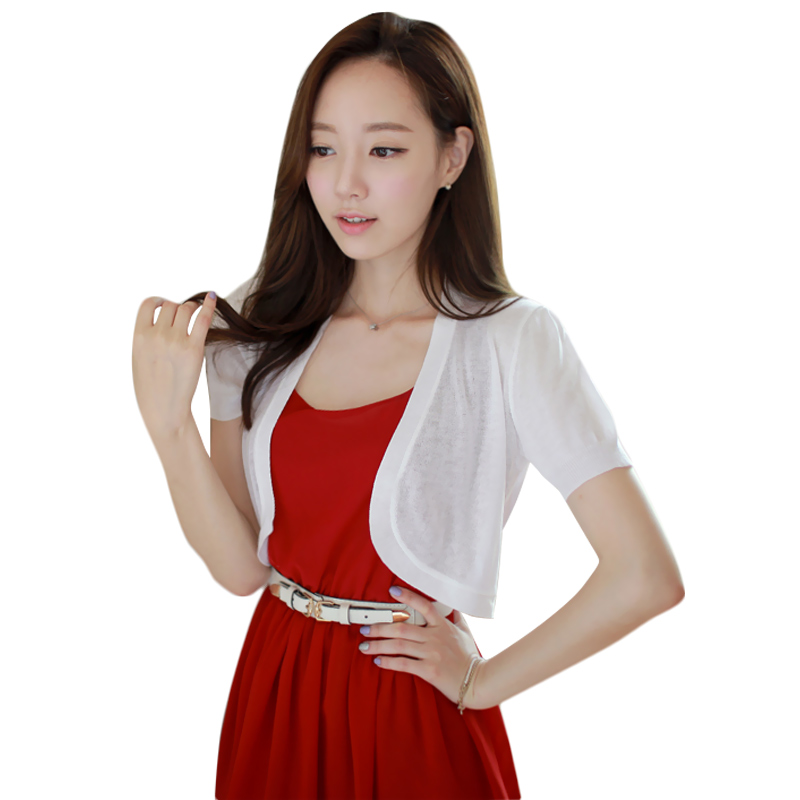 短款短袖針織開衫女 夏季薄款短袖針織衫開衫防曬衫小披肩外套女