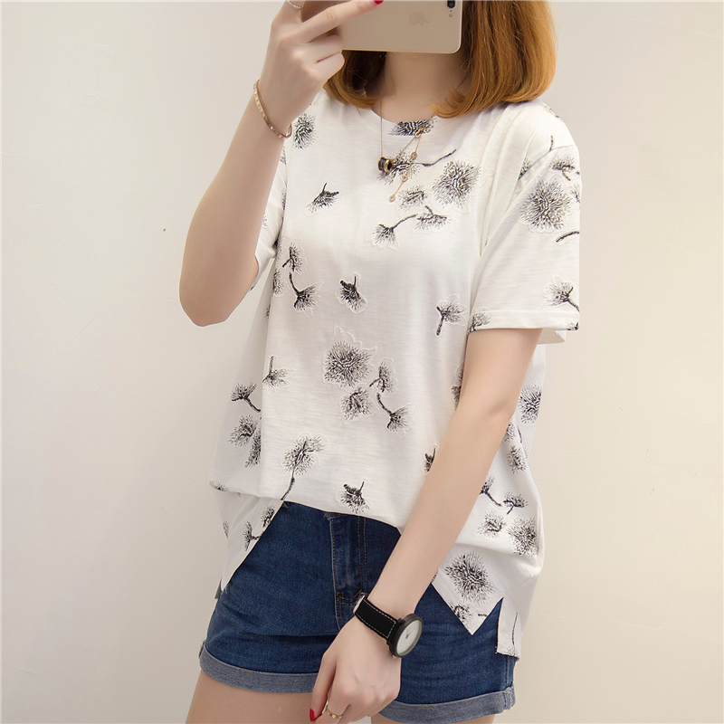 夏裝新款女潮中長款休閑寬松顯瘦短袖t恤女夏bf風小清新上衣