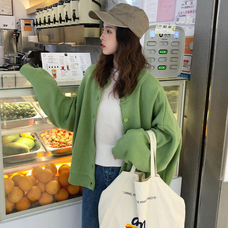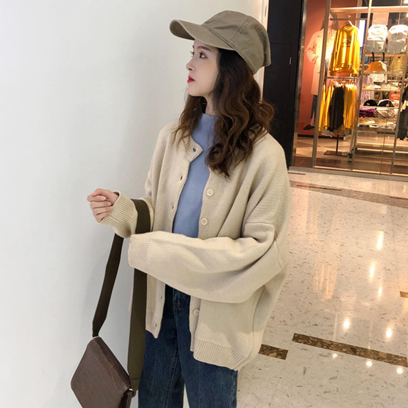 慵懶風毛衣女2018秋裝新款純色寬松針織開衫學生清新長袖外套上衣