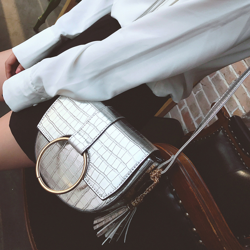 / 包包女新款潮鱷魚紋單肩女包漆皮流蘇小包韓版百搭斜挎圓環包