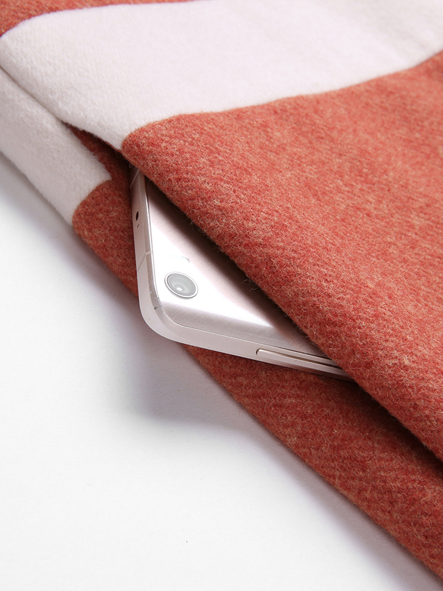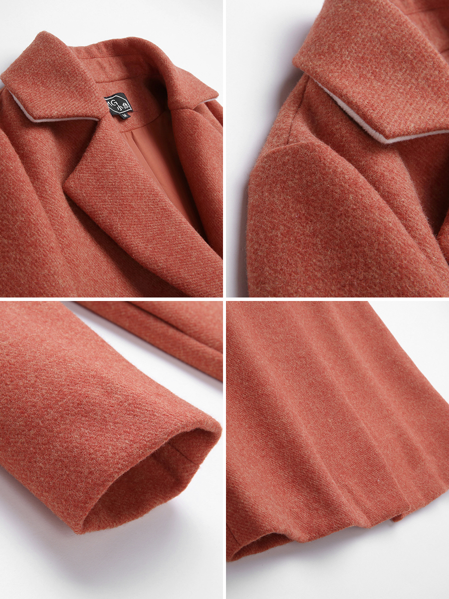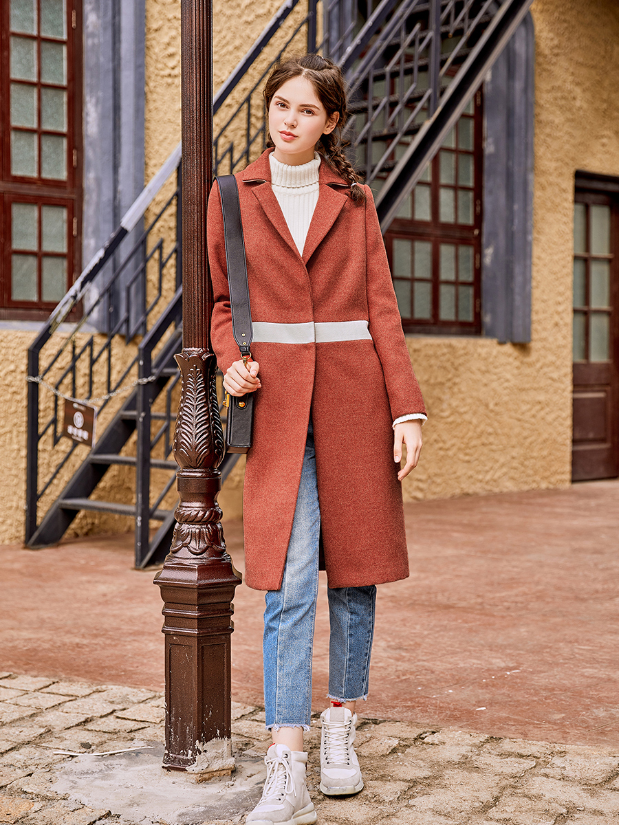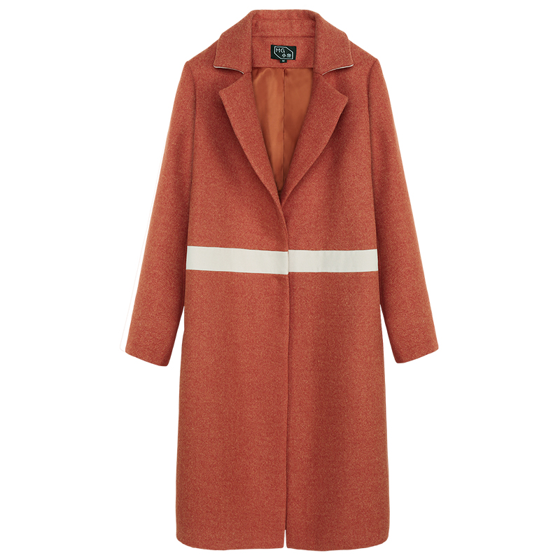 MG小象橘色毛呢外套女中長款寬松冬季新款2018流行拼色呢子大衣潮