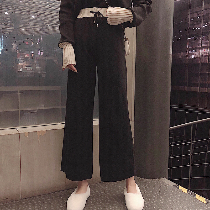 港味時尚女神套裝秋冬2018新款洋氣質針織毛衣+寬松闊腿褲兩件套