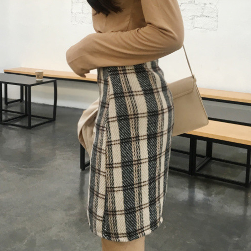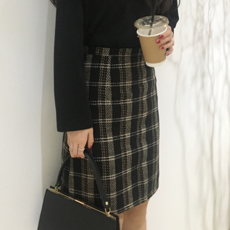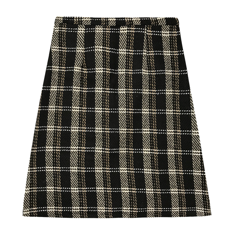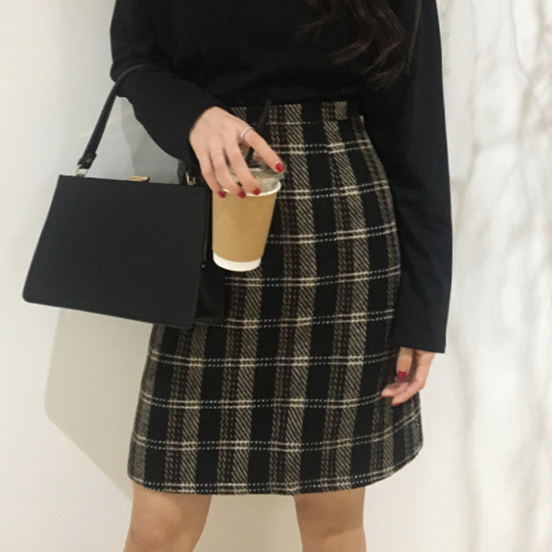 / 時尚毛呢半身裙子秋裝女2018新款百搭復古格子短裙學生高腰A字裙