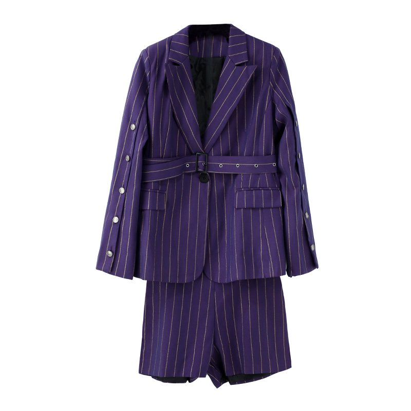 / 春秋新款小西裝女外套韓版中長款長袖休閑氣質條紋英倫風短褲套裝