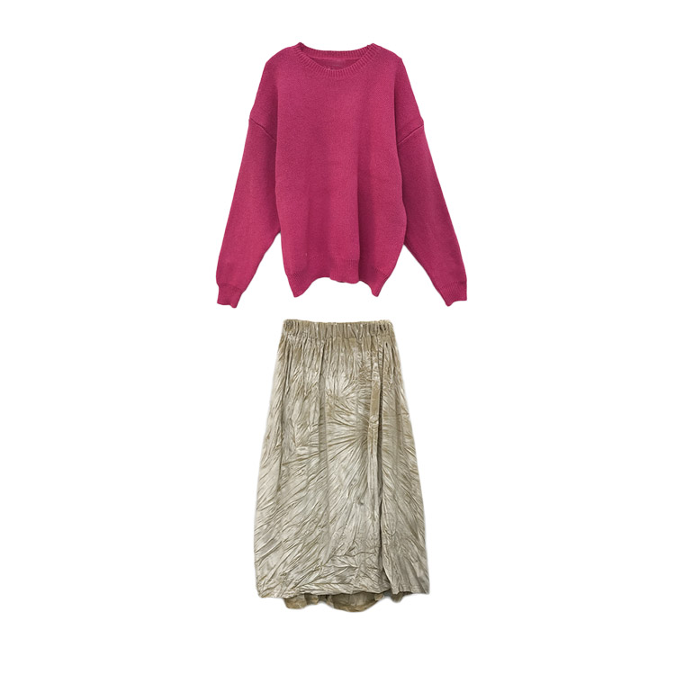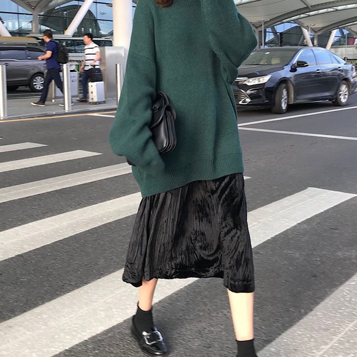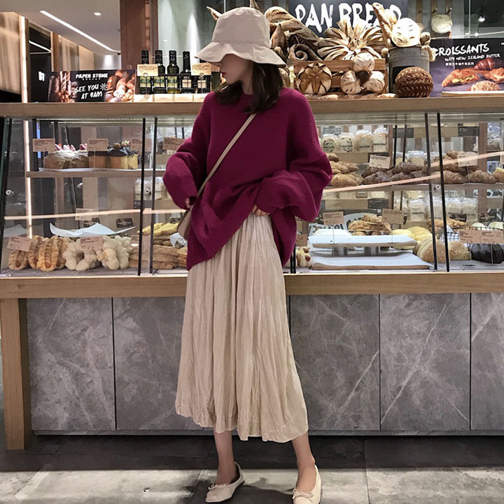 紫紅色毛衣|藍色毛衣|綠色毛衣|同款杏色半身裙|同款藍色半身裙|同款黑色半身裙