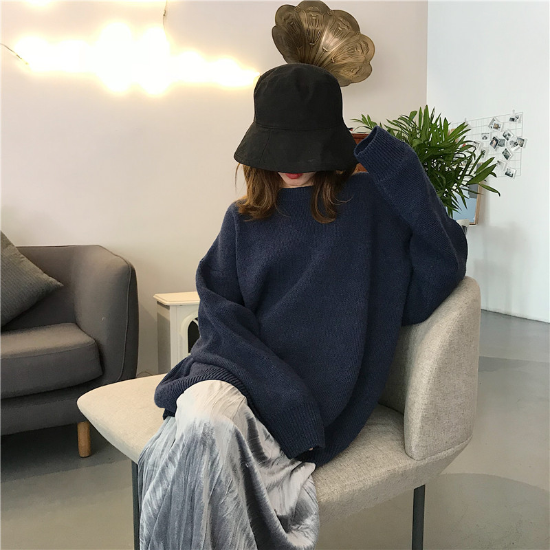 秋裝女2018新款慵懶風寬松百搭簡約套頭針織毛衣純色毛線衫半身裙