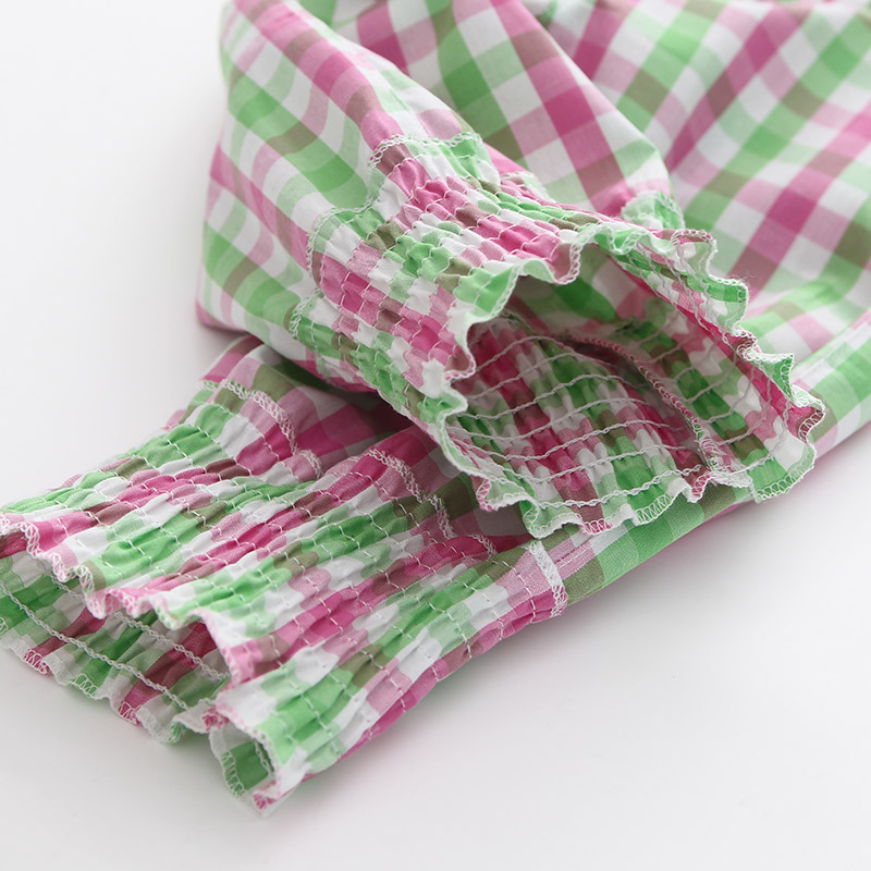 寶寶格子七分褲 夏裝新款女童童裝 兒童縮口燈籠褲子kz-6812