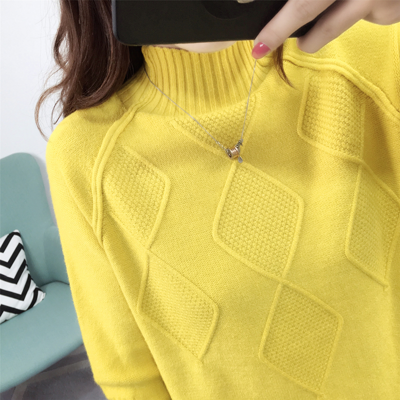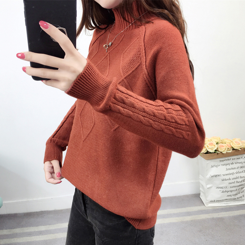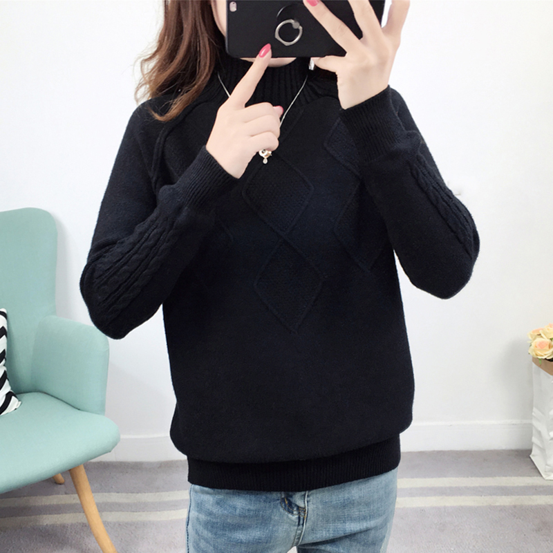 秋冬女裝2018新款半高領白色毛衣學生外穿套頭上衣長袖針織打底衫