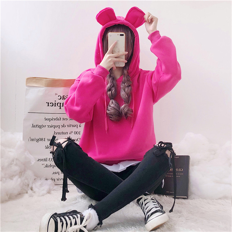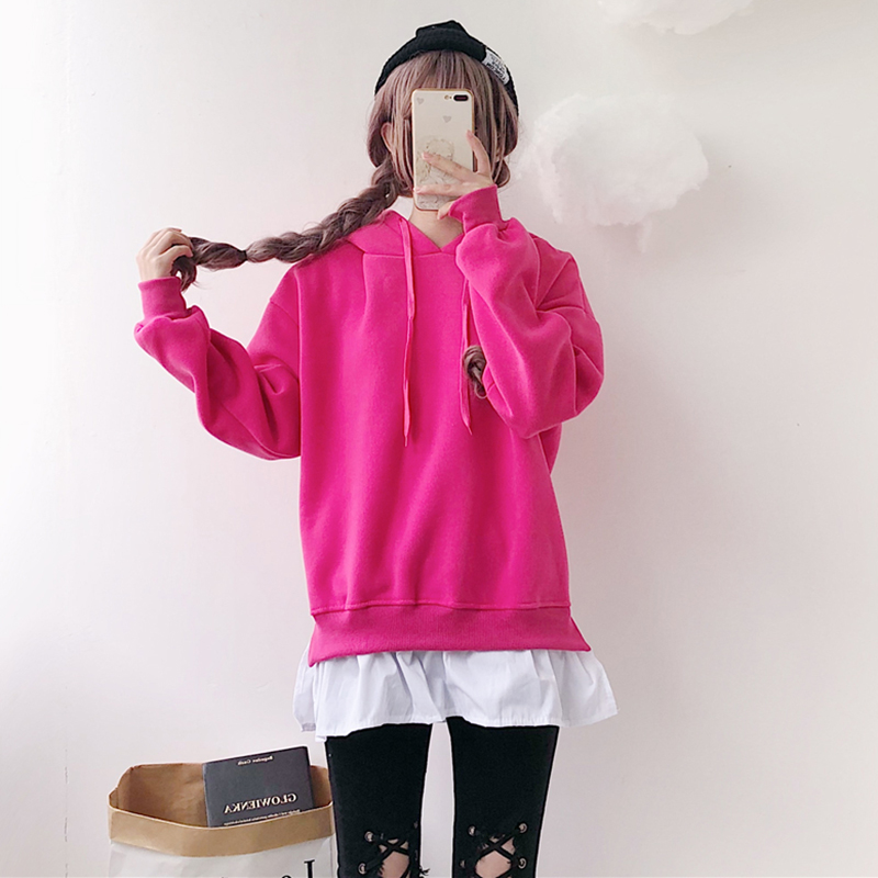 可愛少女假兩件拼接衛衣冬裝2018新款韓版中長款寬松休閑連帽外套