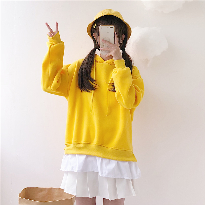 / 可愛少女假兩件拼接衛衣冬裝2018新款韓版中長款寬松休閑連帽外套