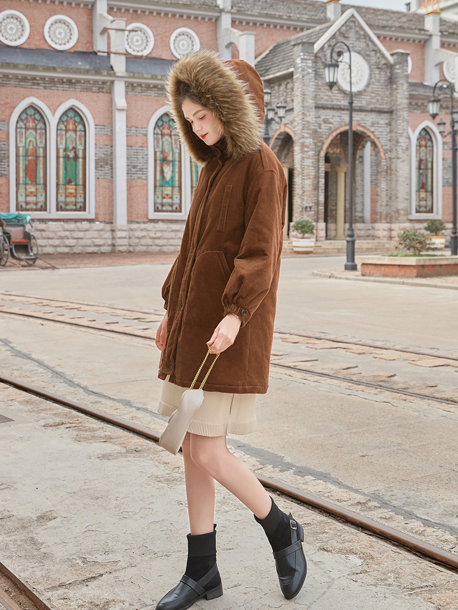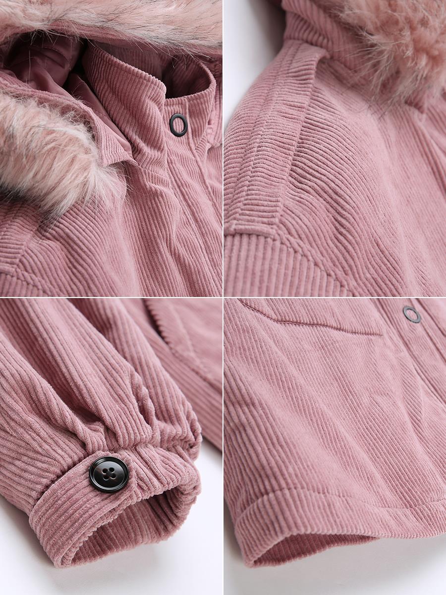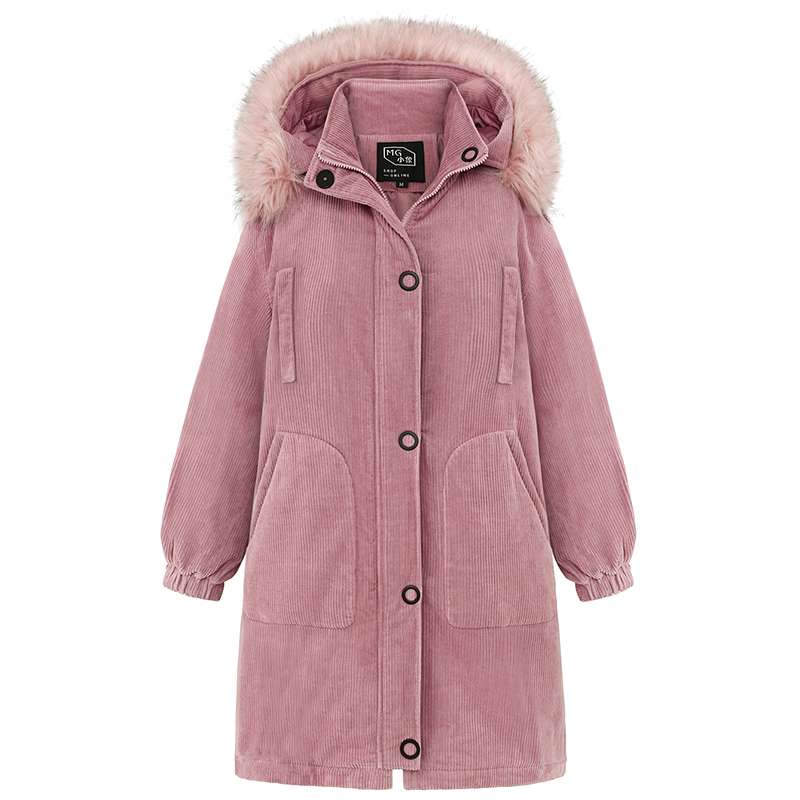 MG小象燈芯絨棉服女冬裝2018新款寬松復古小棉襖中長款韓版棉衣潮