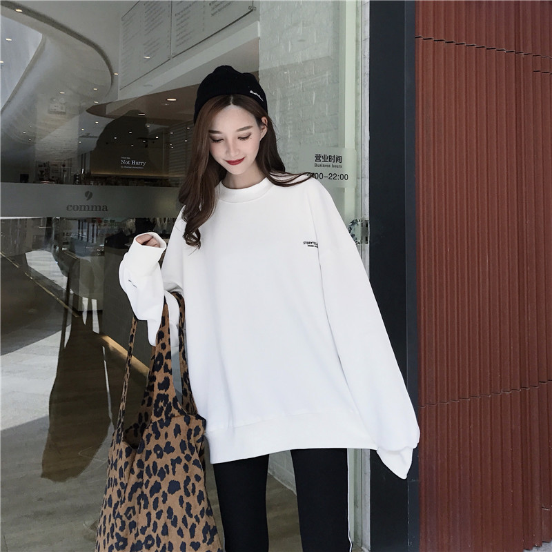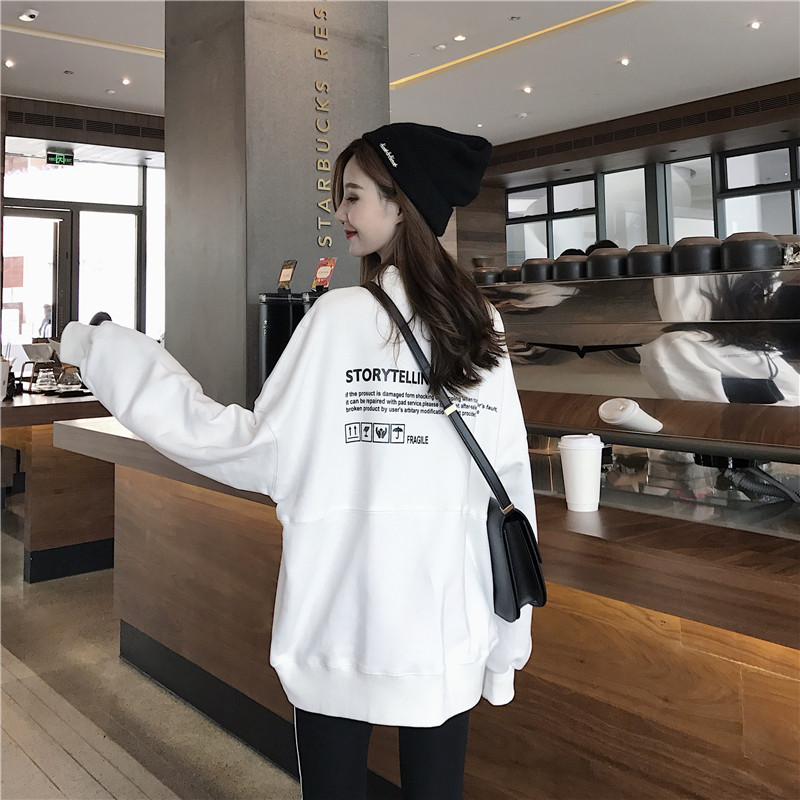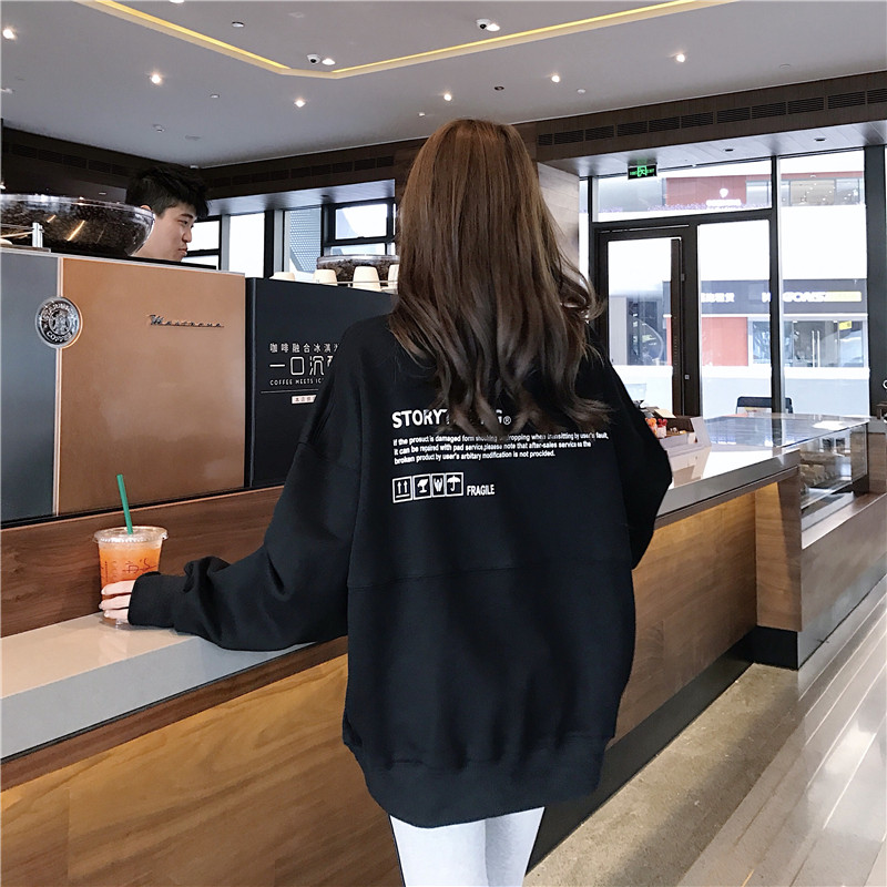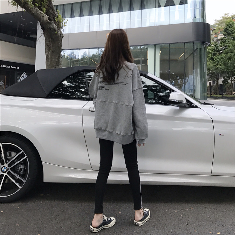 港風薄款衛衣女秋2018新款小高領懶惰風寬松圓領印花字母長袖上衣