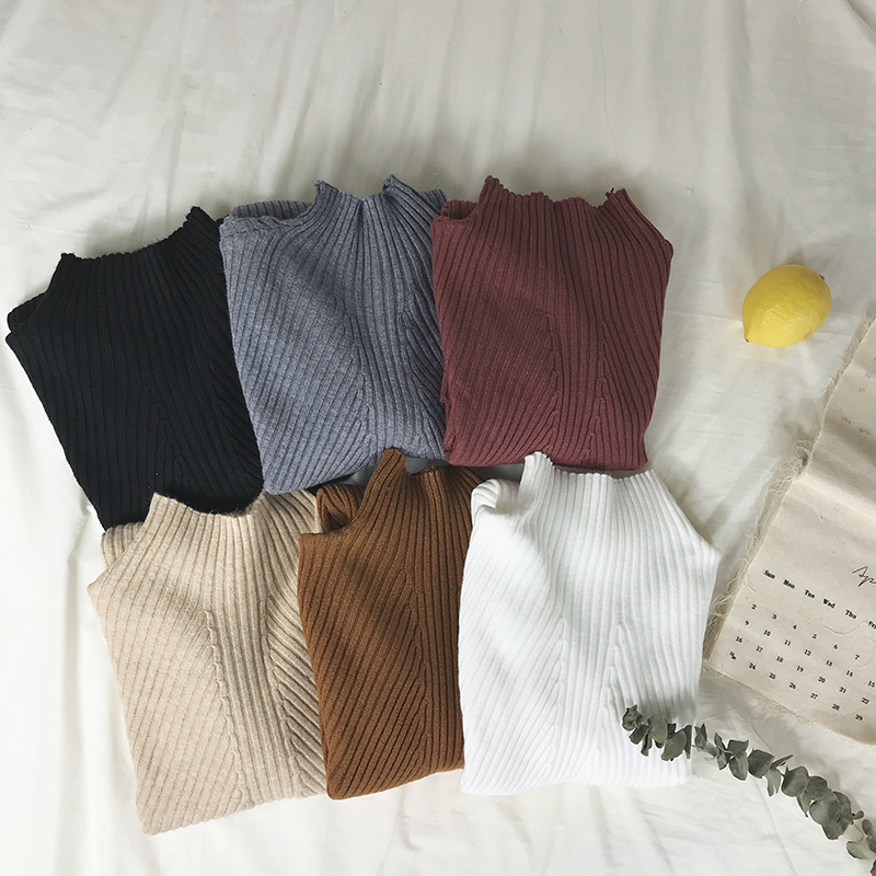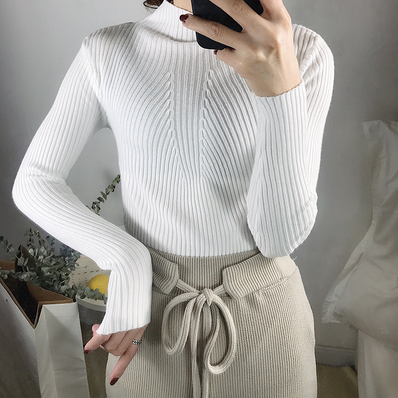 / 毛衣女2018新款秋裝半高領修身彈力打底衫長袖針織衫簡約純色上衣