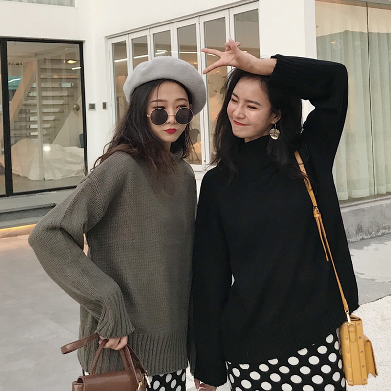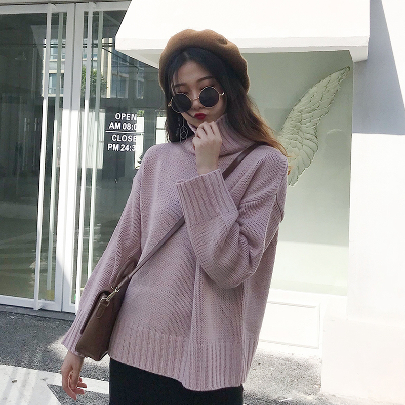 chic風高領套頭針織衫女秋冬裝2018新款韓版時尚寬松長袖毛衣外套