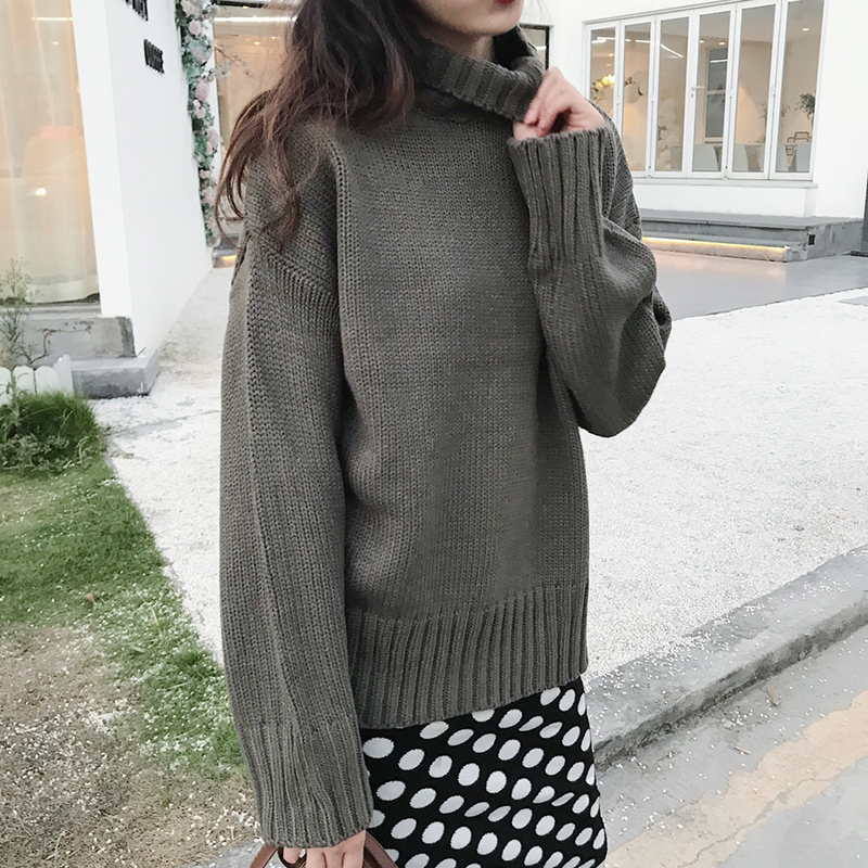/ chic風高領套頭針織衫女秋冬裝2018新款韓版時尚寬松長袖毛衣外套