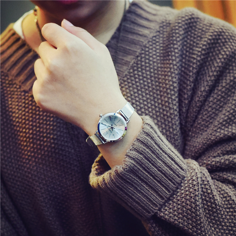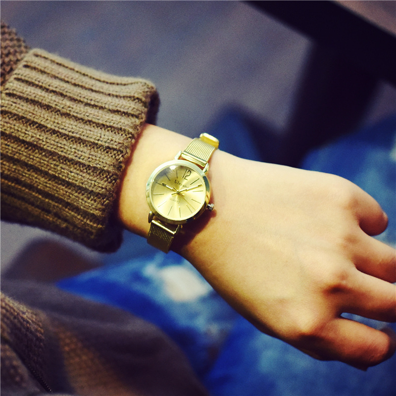 閨蜜手表女學生韓版時尚潮流簡約鋼絲帶鏈休閑皮帶復古首飾石英表