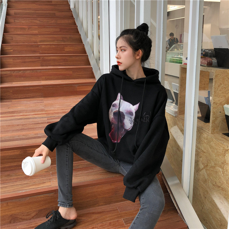 chic上衣慵懶風寬松衛衣女秋冬2018新款韓版時尚連帽加絨印花衛衣
