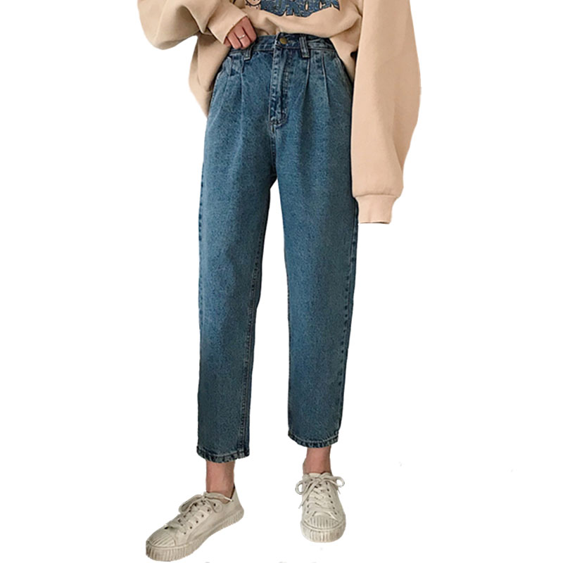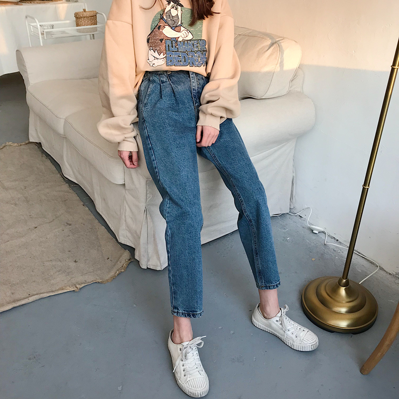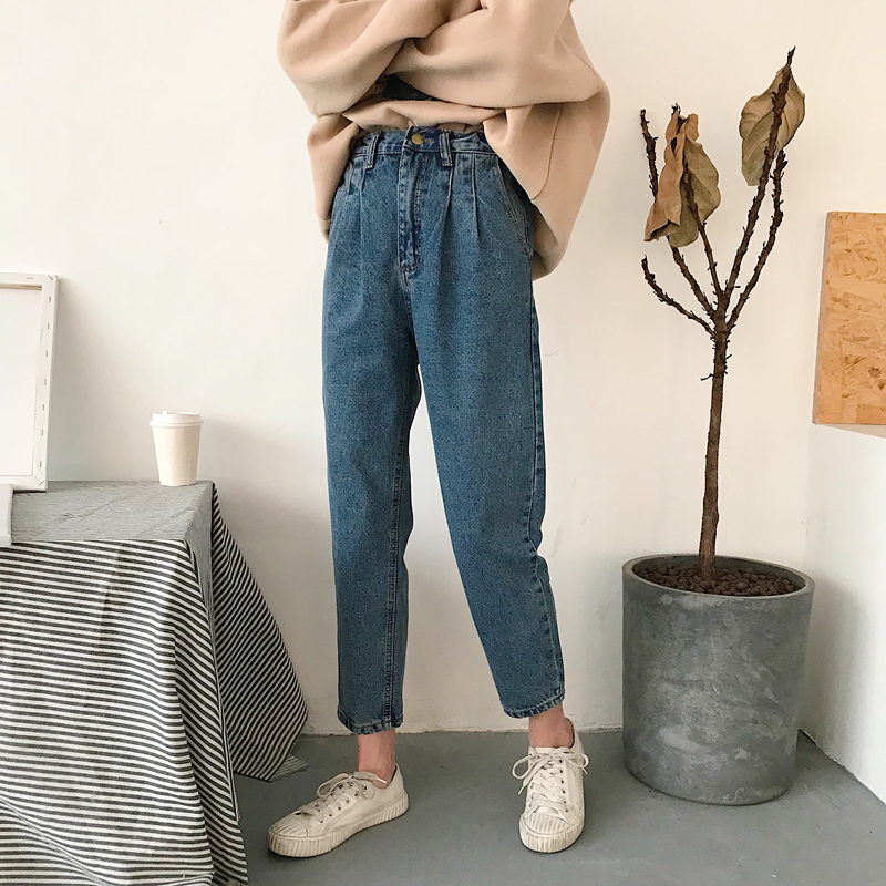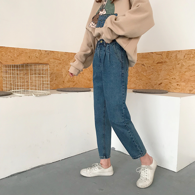 / 秋裝女裝韓版寬松百搭高腰牛仔褲九分褲哈倫褲學生直筒褲長褲顯瘦